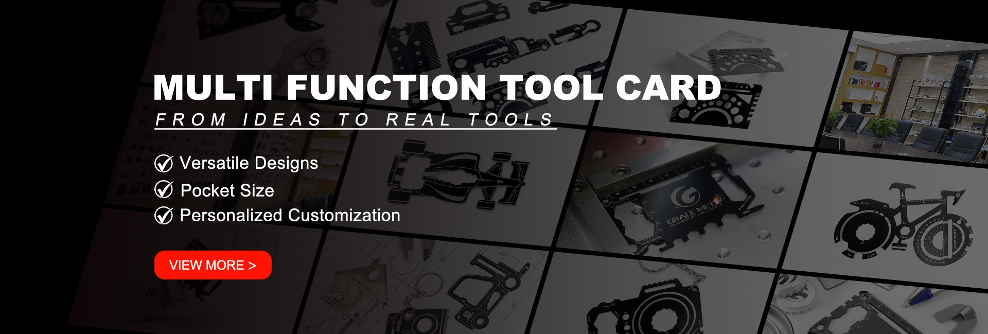 We have passed the standard attestation of ISO9001 International Quality System and our product has been made in a number of design patents. We specialize in the production of outdoor multi tools, survival tool cards and key chains, metal bottle openers, metal kitchen tool and any other metal craft products.